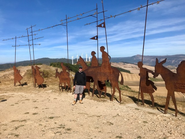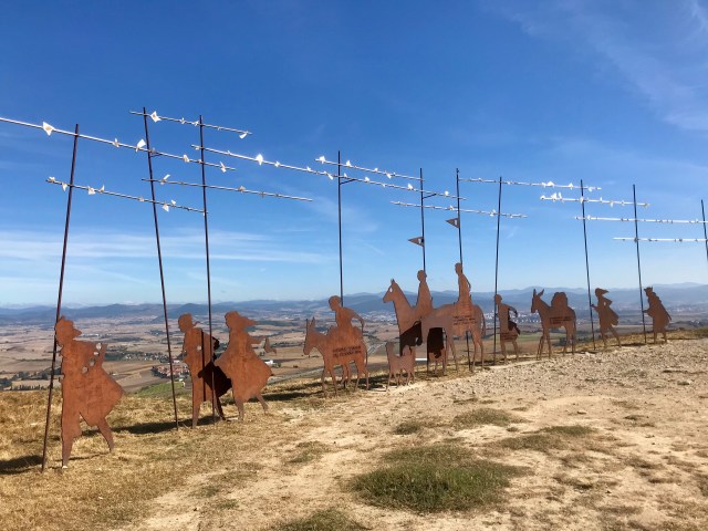 The climb became quite steep, until it peaked at Alto del Perdón, about 800m above sea level. The path led me to a packed open-air Sunday church congregation and a dozen gorgeous wrought-iron figures of medieval Pilgrims.